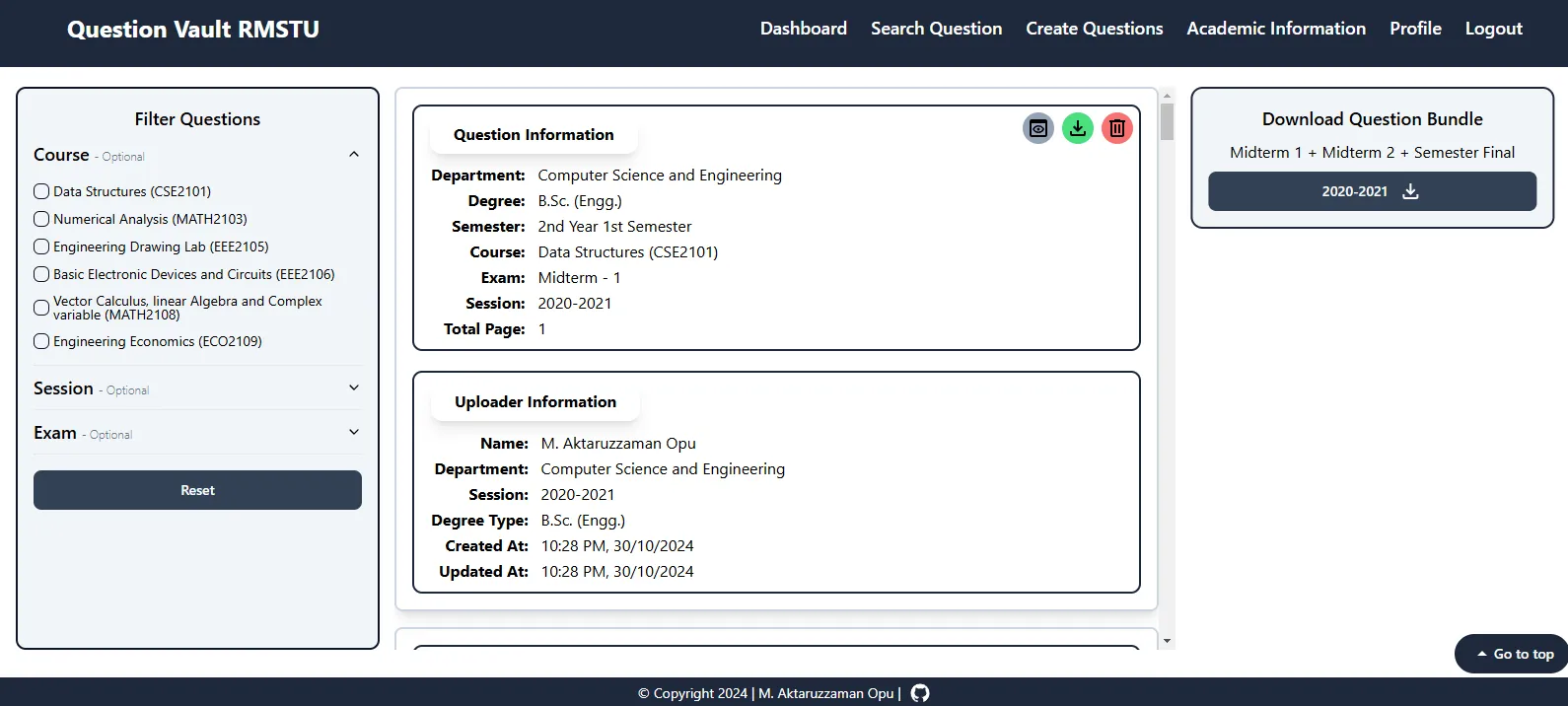 A digital repository system for managing and accessing academic exam questions at RMSTU (Rangamati Science and Technology University).