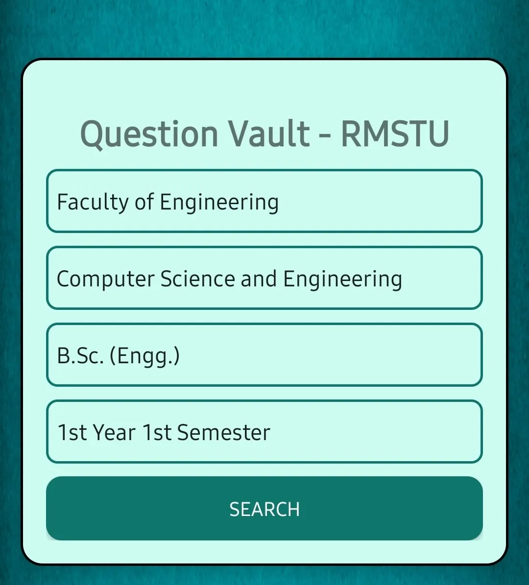 A simple app to search all previous questions of my university and filter them. It's an mobile frontend for the Question Vault website.