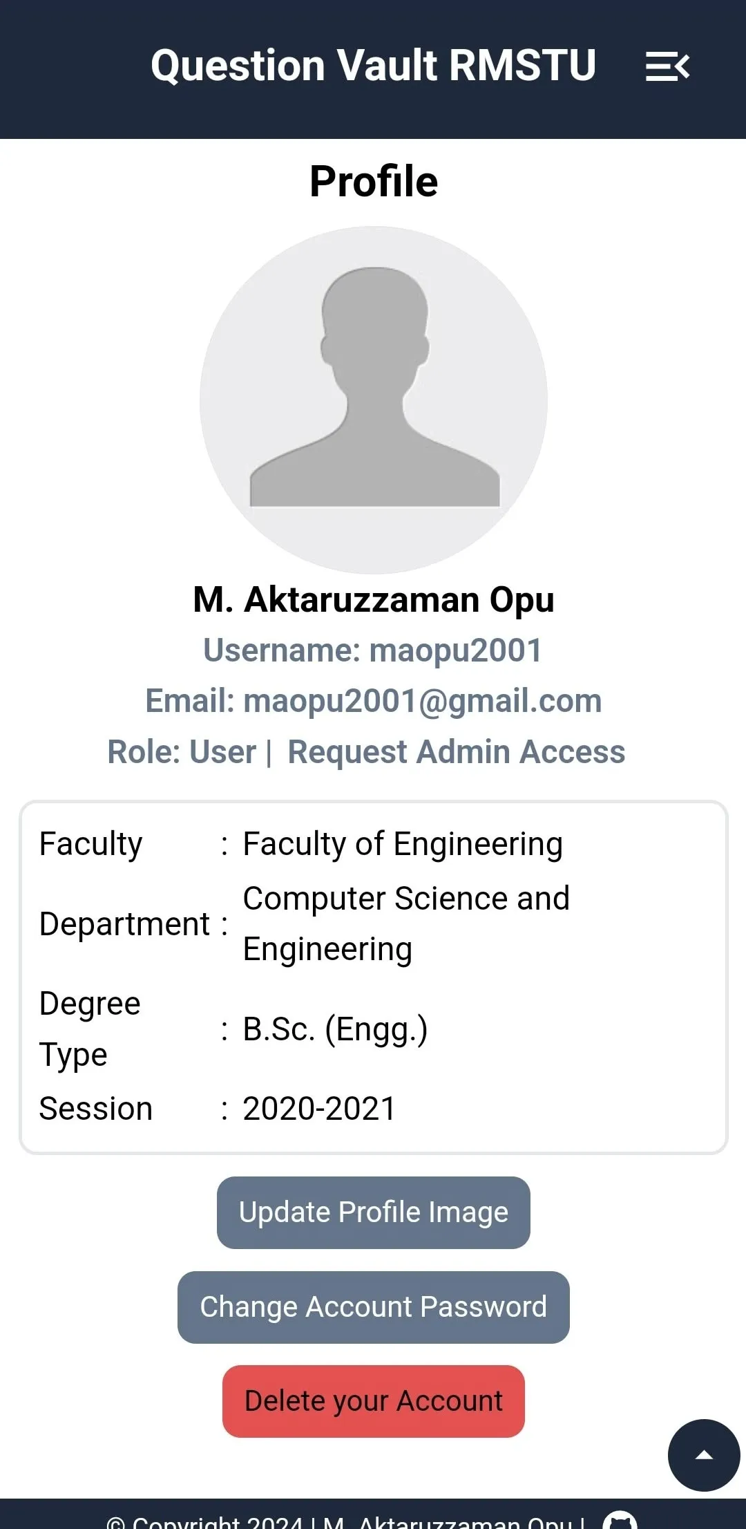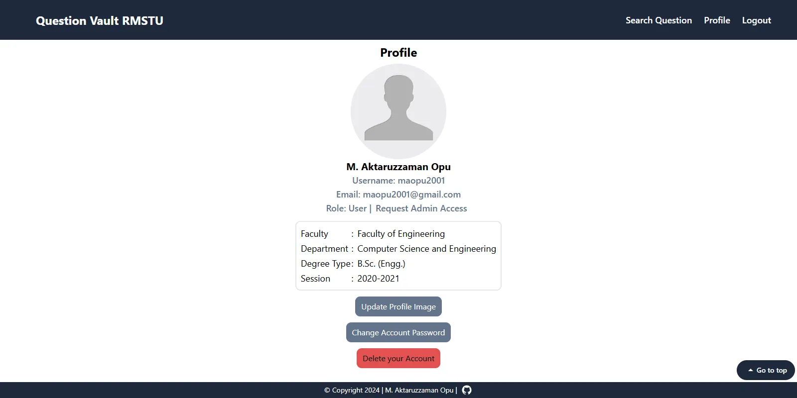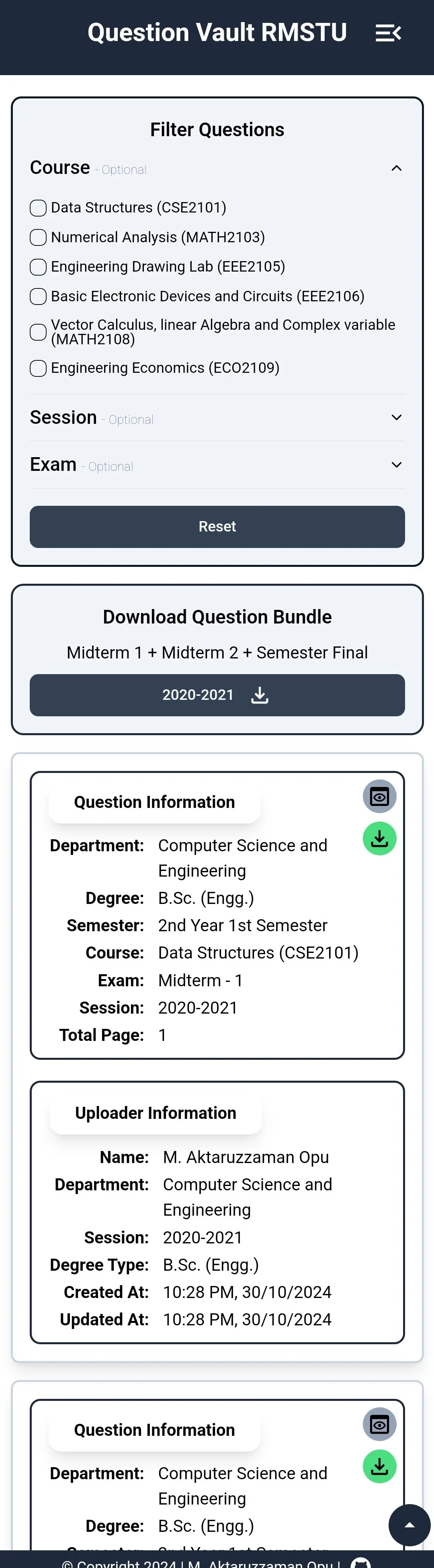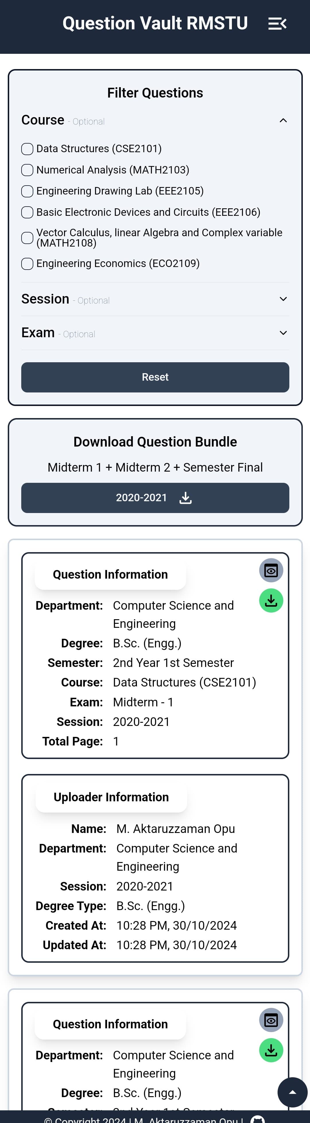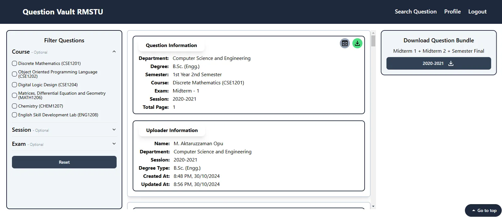 A digital repository system for managing and accessing academic exam questions at RMSTU (Rangamati Science and Technology University).